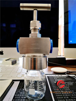 DSA采樣器,安裝在需要采樣的主管道旁邊,形成支路,并用外徑為6mm的管子與放空口相連,將此連接到廢氣收集罐 ,防止廢氣境。當采樣時,污染環輕輕旋動手柄,帶動閥針向上提起,閥門打開,觀察放料情況,當采樣瓶中物料達到所需量時,旋動手柄,將閥針降下,閥門關閉。在此過程中,切忌用力過大,以免破壞密封面,引起泄漏。然后旋下采樣瓶,蓋緊瓶蓋,完成采樣。 |