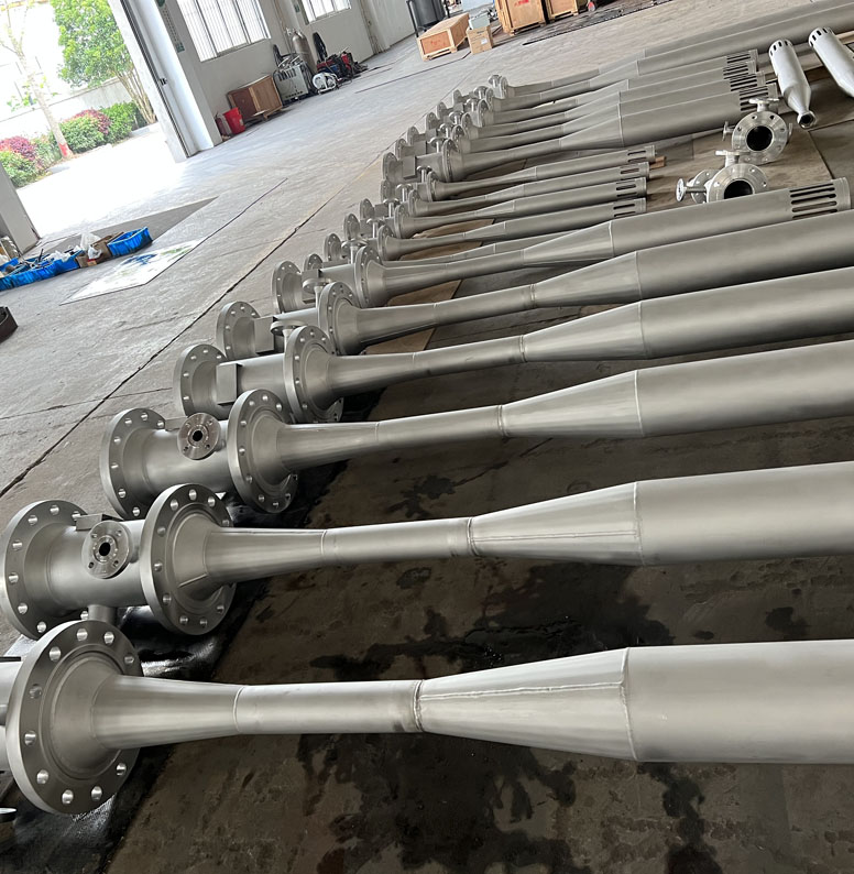 | SP系列噴射混合器主要型號共有三種:SP-Ⅰ型、SP-Ⅱ型和SP-Ⅲ型。SP-Ⅰ型是液/液混合器,即工作流體和引射流體都是液體,而兩者的粘度都比較小(與水的粘度相近);SP-Ⅱ型是氣/氣混合器,即工作流體和引射流體都是氣體。由于氣體的粘度都很小,所以只要操作條件合適;SP-Ⅱ型幾乎用于所有的氣體;SP-Ⅲ型是氣/液混合器,通常液體的壓力較高作為工作流體, 而氣體的壓力較低作為引射流體。 |