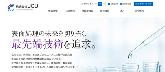 日本株式會社JCU(原荏原優(yōu)吉萊特株式會社)創(chuàng)立于1957年,是一家集合表面處理裝置與表面處理用添加劑兩大功能的綜合性企業(yè)。以提供汽車、建材、水龍頭、電子零件、半導體等各類的表面處理技術藥品及裝置為主要事業(yè),提供包含從制程到后續(xù)追蹤等綜合解決方案和技術服務,是電鍍等表面處理行業(yè)里數(shù)量極少的享譽全球的跨國企業(yè)。