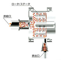 粉砕をシングルパスにて行うことができます。供給ポンプの液圧と高速回転するロータ/ステータの機械的なせん斷力により、実現しました。